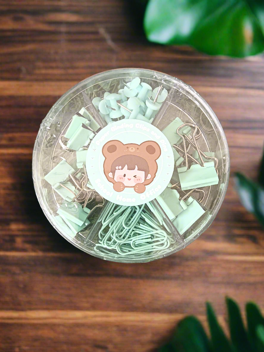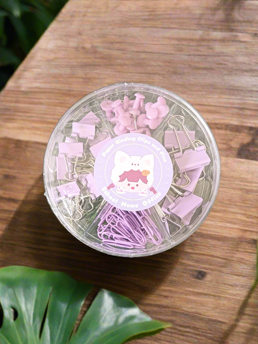 Kawai Paper Clips and Binder Clips Set, Metal Binders with Push Pins