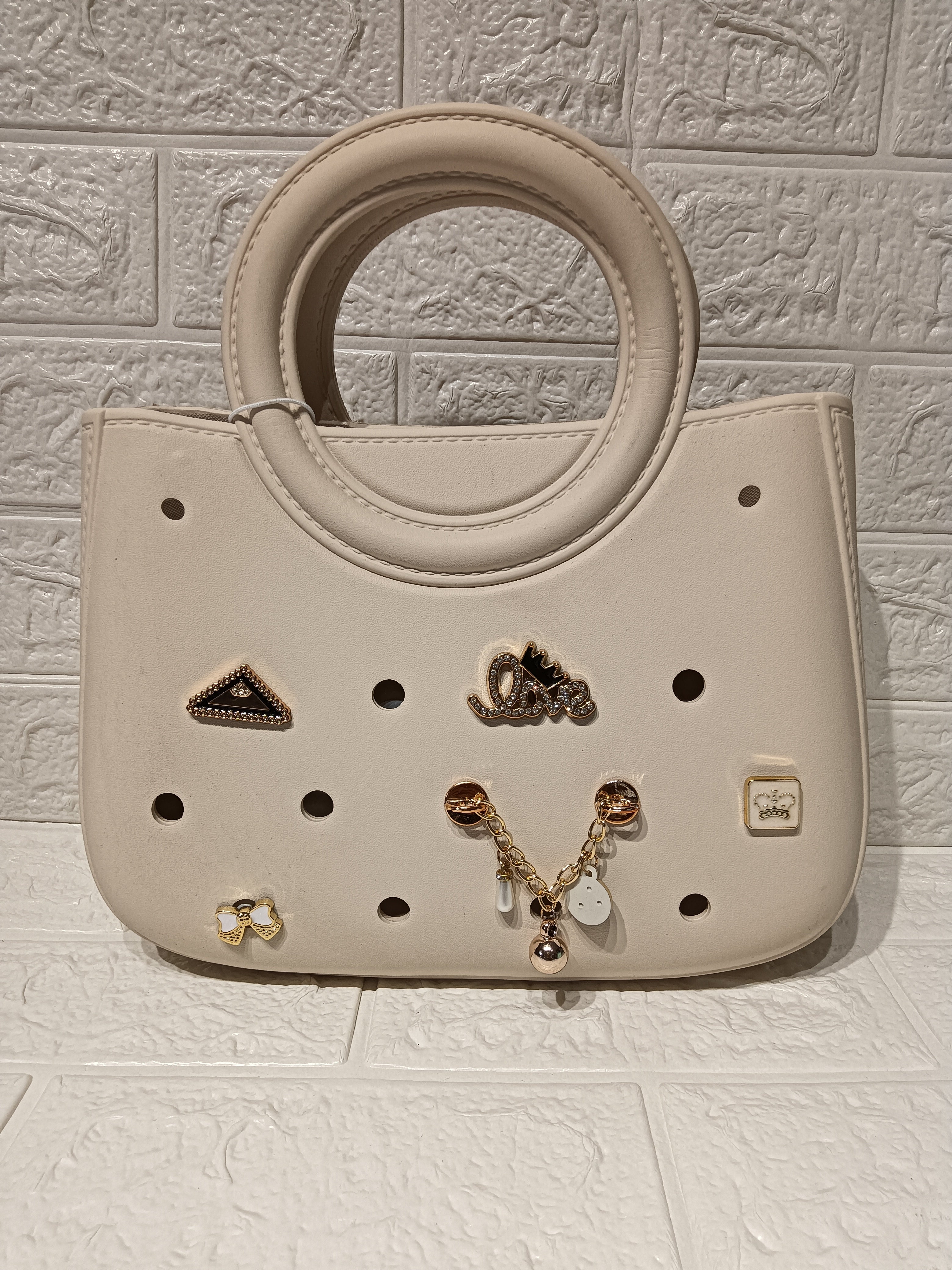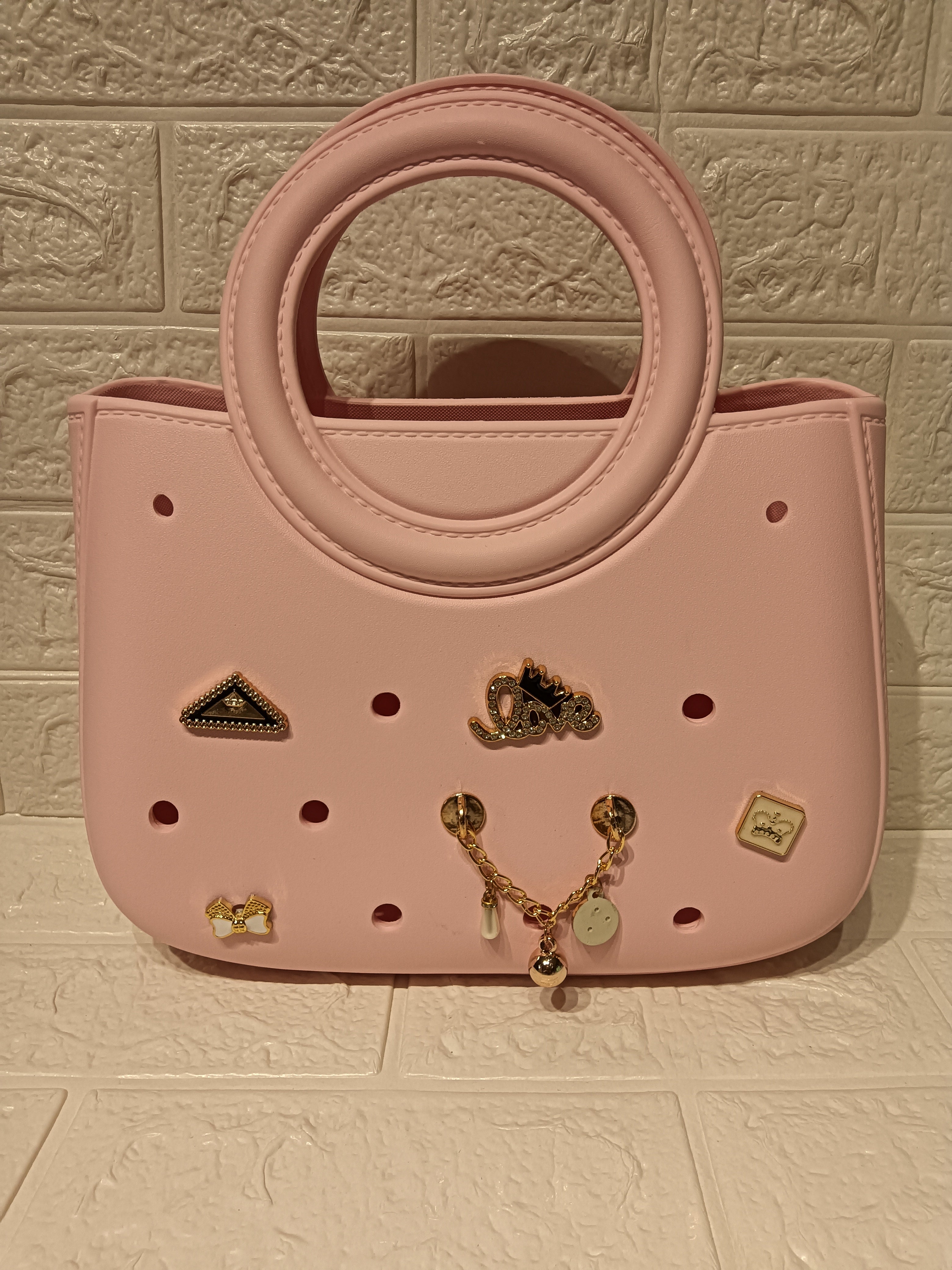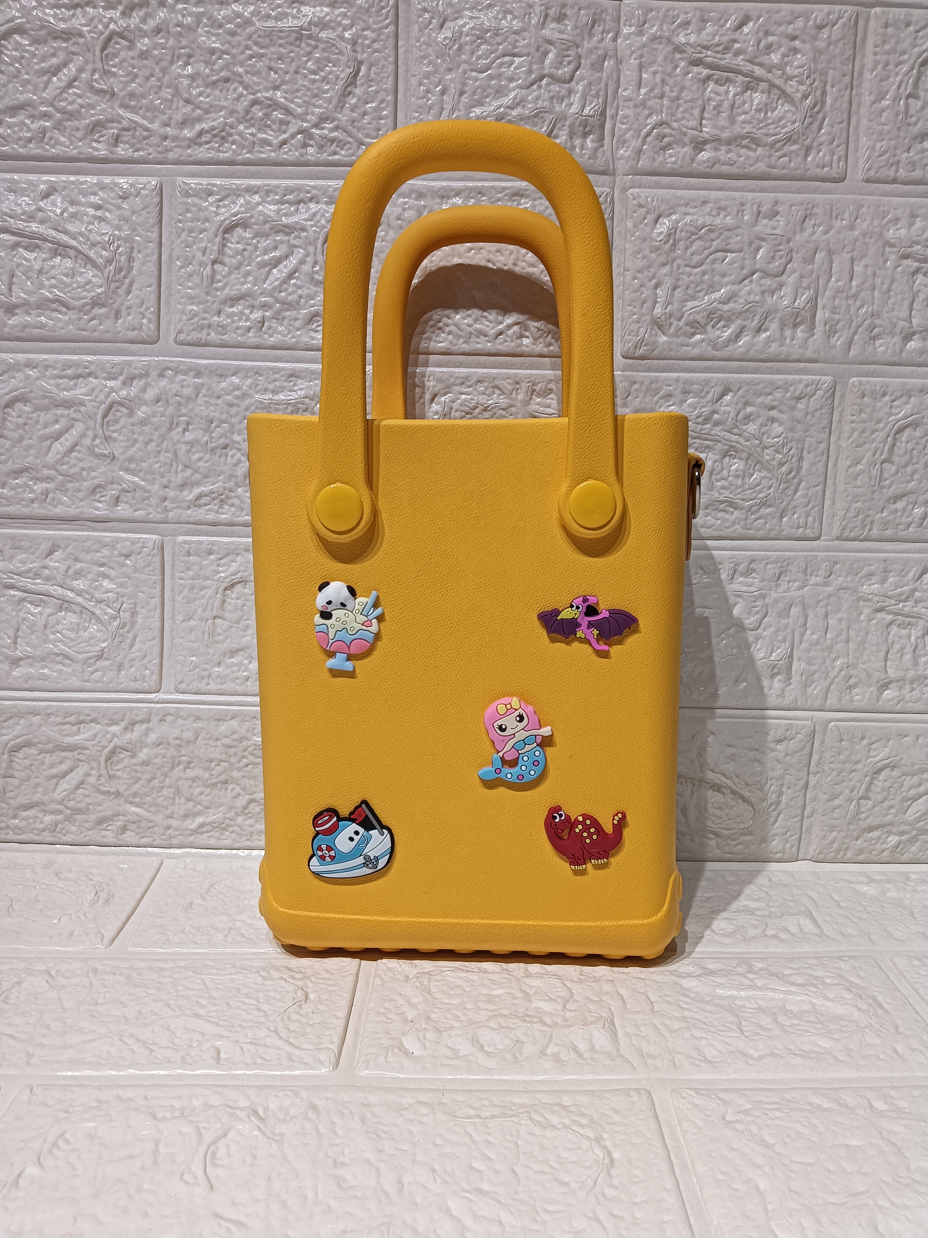Kids purse cum bag with pearl handle and chain long sling. Comes with spinner at front and light too.