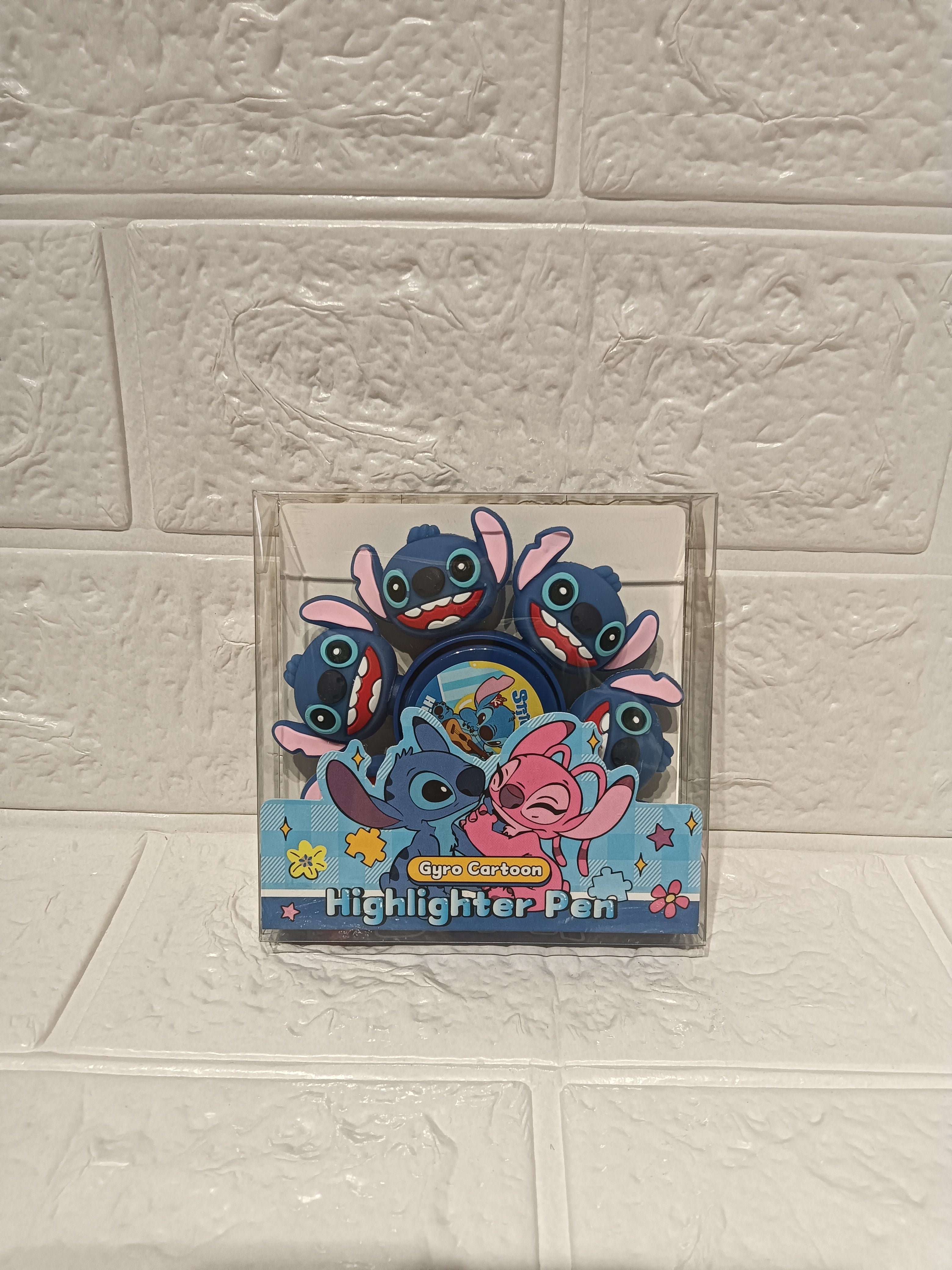 Spinner with Highlighter. The set includes multiple highlighters, with the caps featuring the faces of Stitch and Angel. The product is a stationery item that...