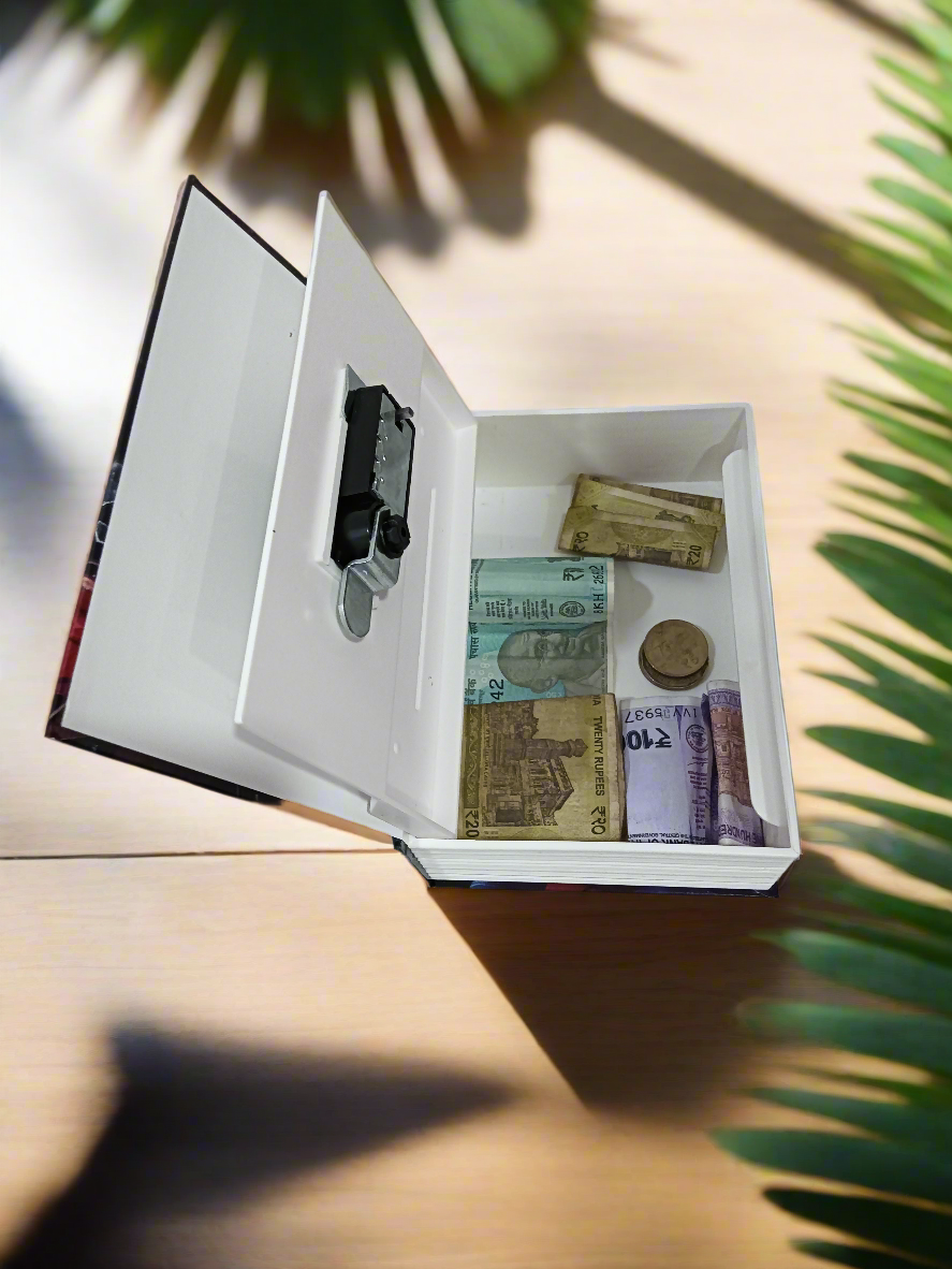 Book-shaped money bank, also referred to as a "Save Money Storage Collection Book" or a "book-themed piggy bank".