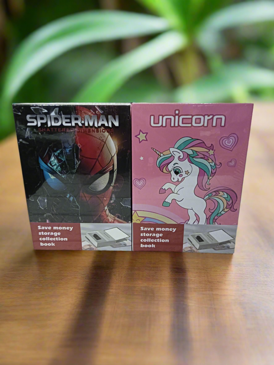 Functionality:The text "Save money storage collection book" clearly indicates its purpose as a money bank or a storage box for savings.