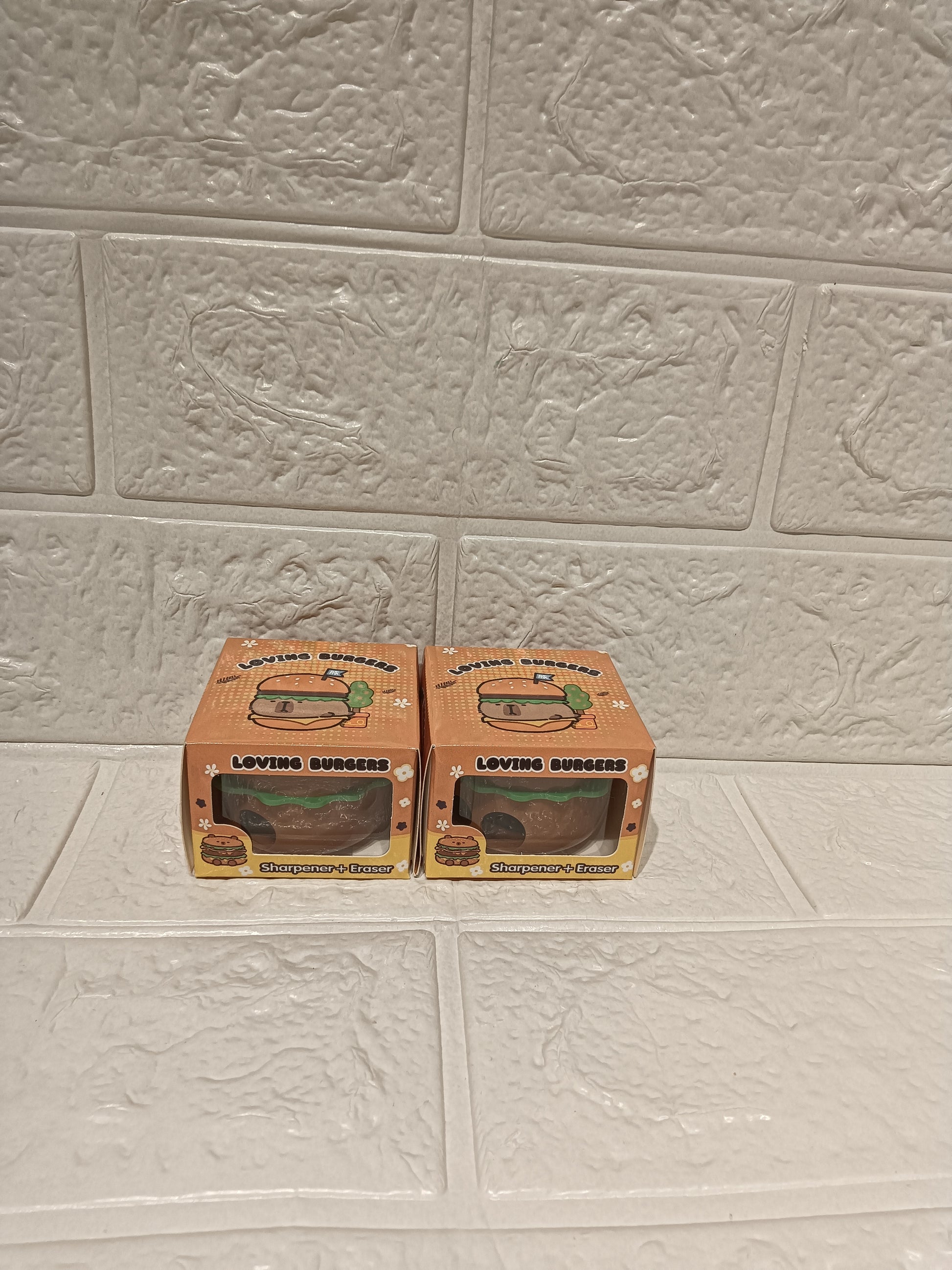 - One pack has One Burger shape sharper with dual sharpeners and an eraser.