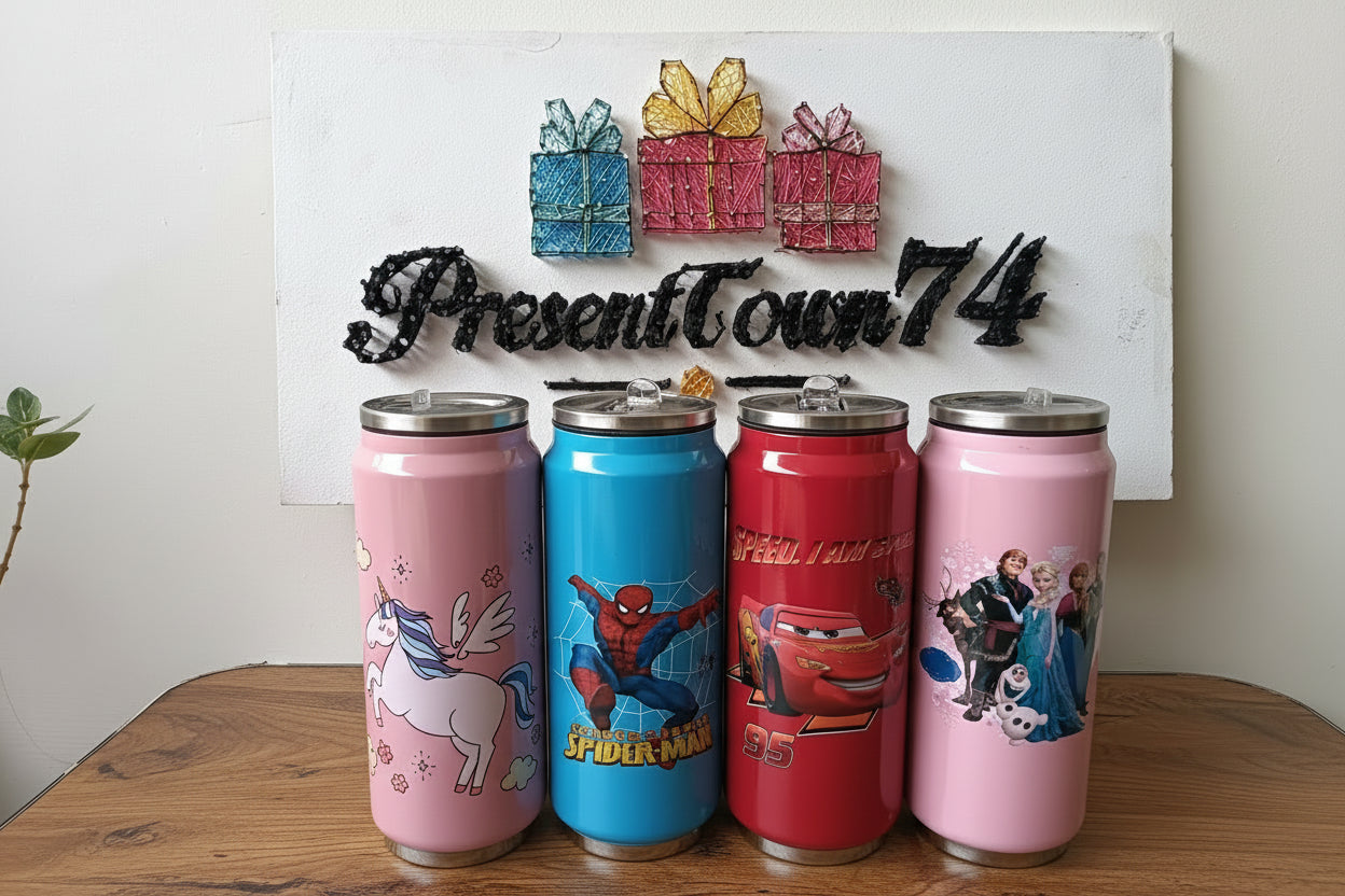 ⭐ Trendy can-style tumblers in fun kids’ themes – Unicorn, Spiderman, Cars & Frozen in 500ml Capacity.