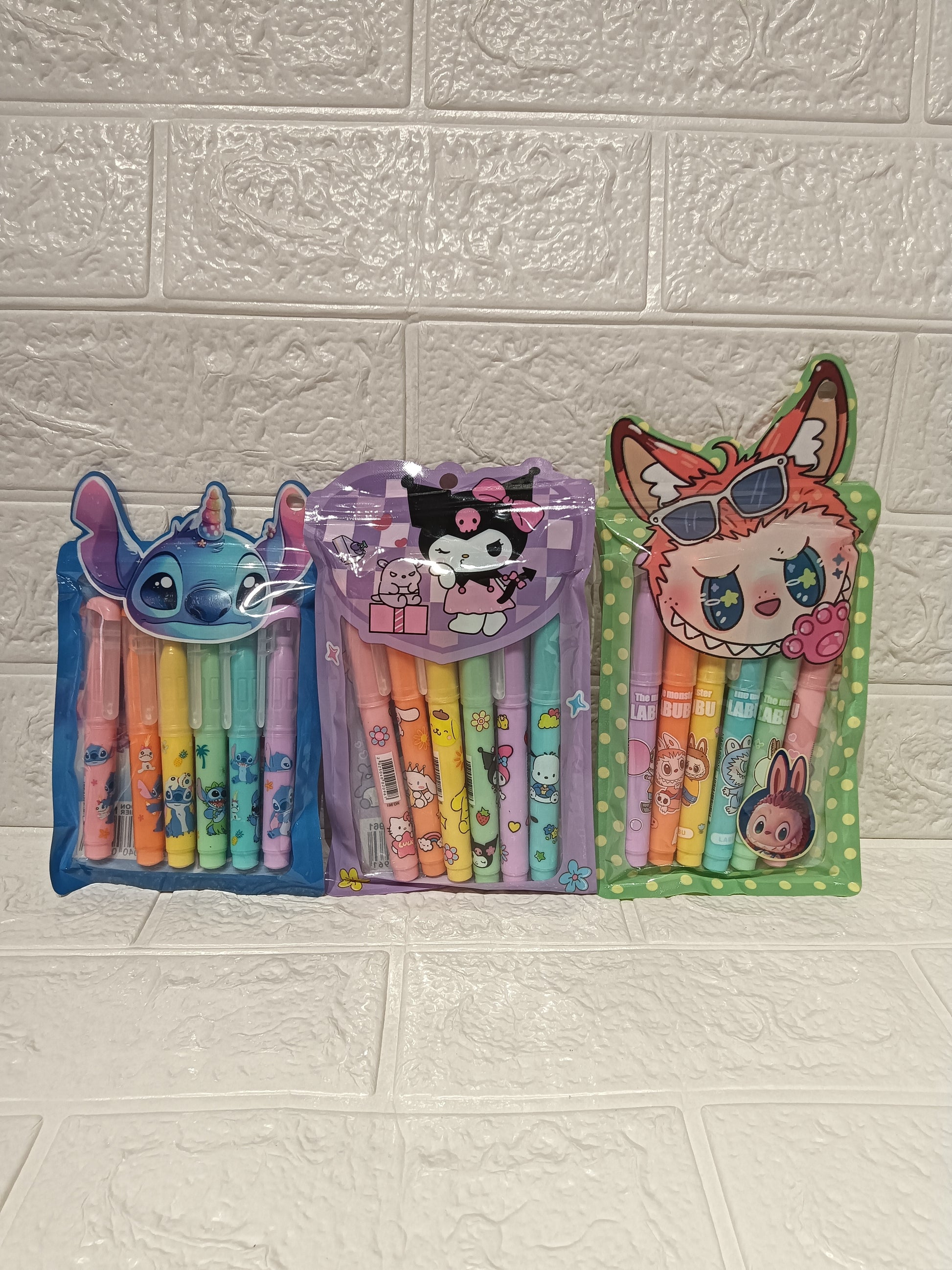 - The packaging features characters that resemble Stitch, Kuromi, and Labubu.