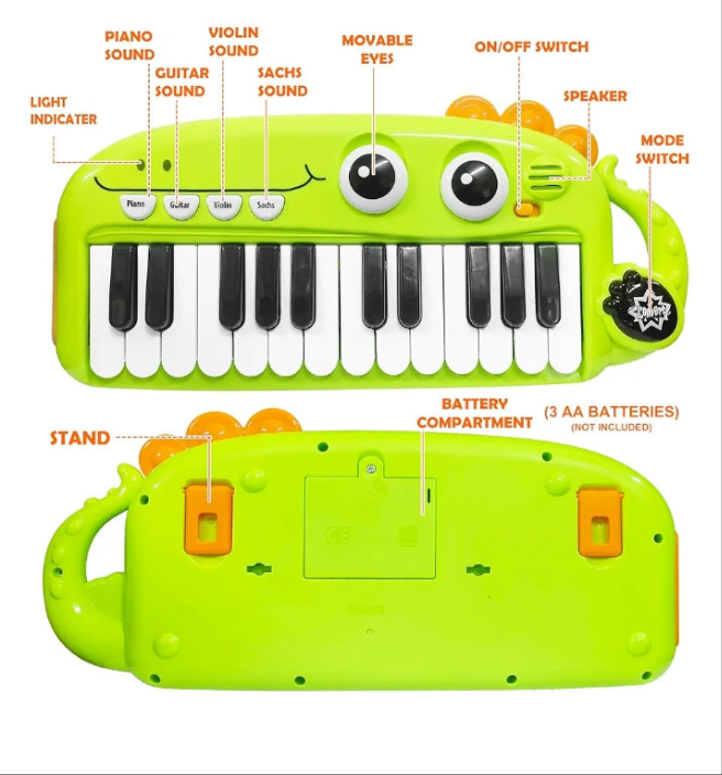 - 🎹 ♫【24 KEY PIANO】 :- This VGRASSP Dinosaur Piano toy has 24keys. 14 white and 10 black keys. White keys play natural notes and Black keys have flat and sharp notes. This toy helps your child in building and improving hand-eye coordination, musical theory.