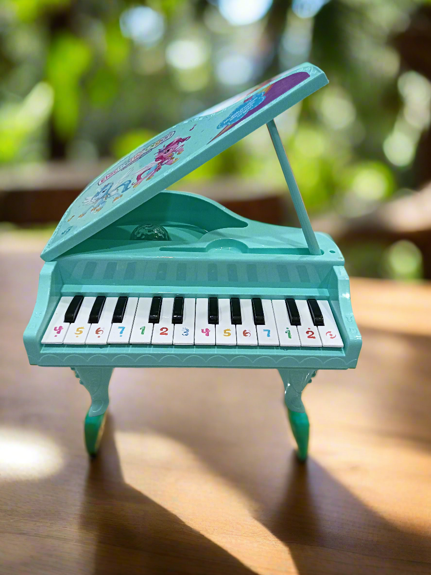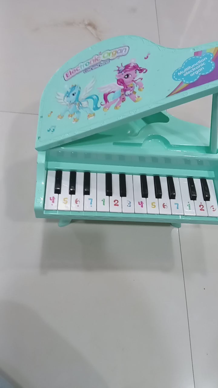 Theme:The "Cute unicorn" theme is prominent, featuring cartoon horse characters on the packaging and the organ itself.