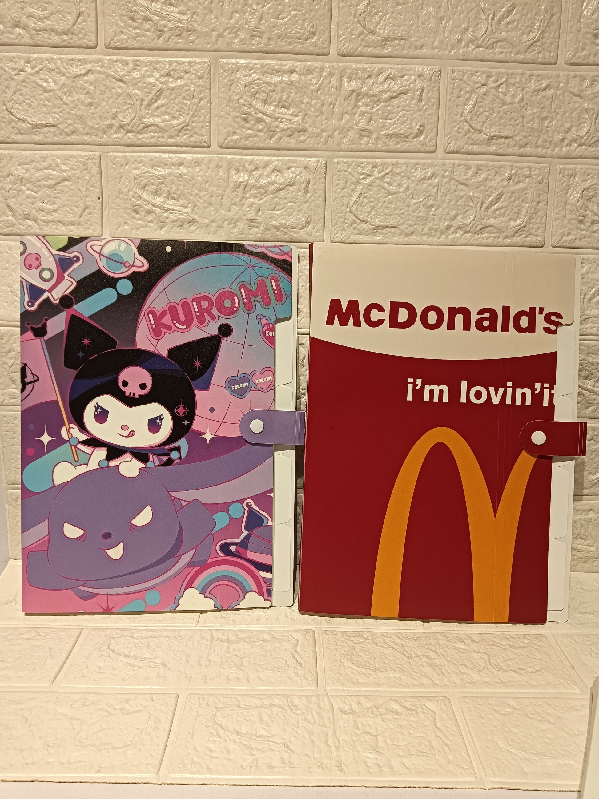 character-themed folders, featuring Kuromi, Stitch, and McDonald's.