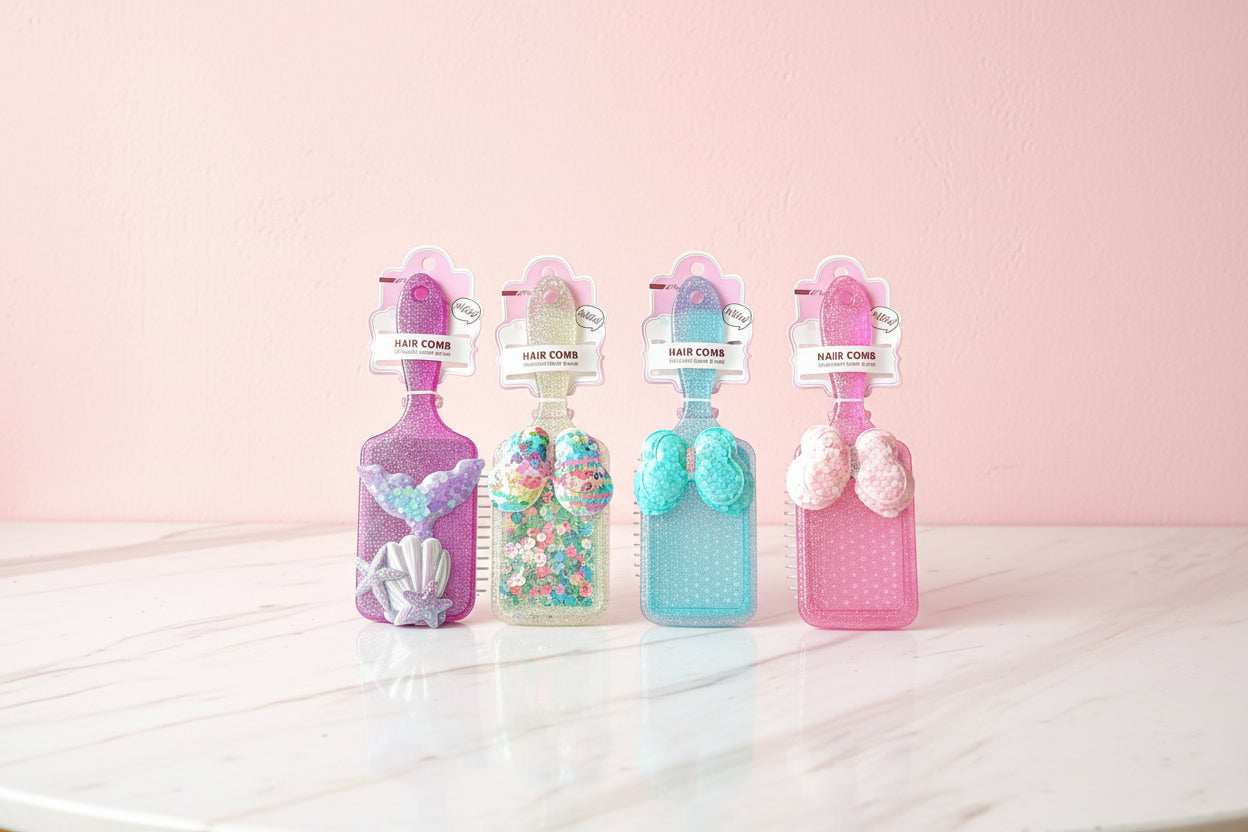 ⭐ Cute glitter hair combs with adorable bow & shell designs