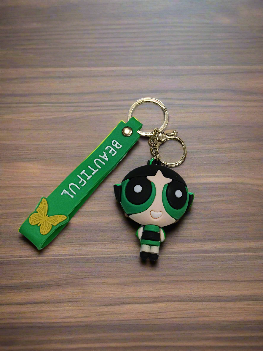Powerpuff Girls keychains, featuring characters like Blossom, Bubbles, and Buttercup.