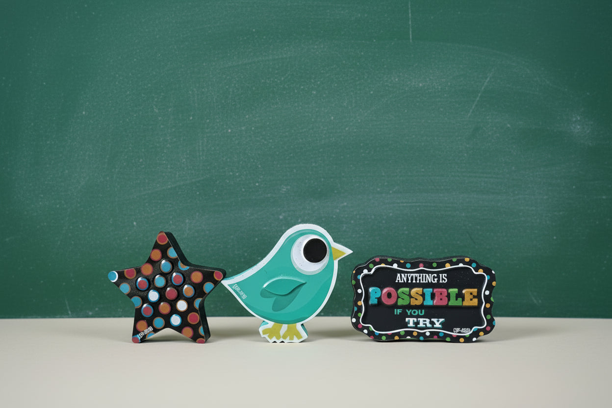 ⭐ Cute and colorful magnetic board dusters with fun shapes & motivational designs