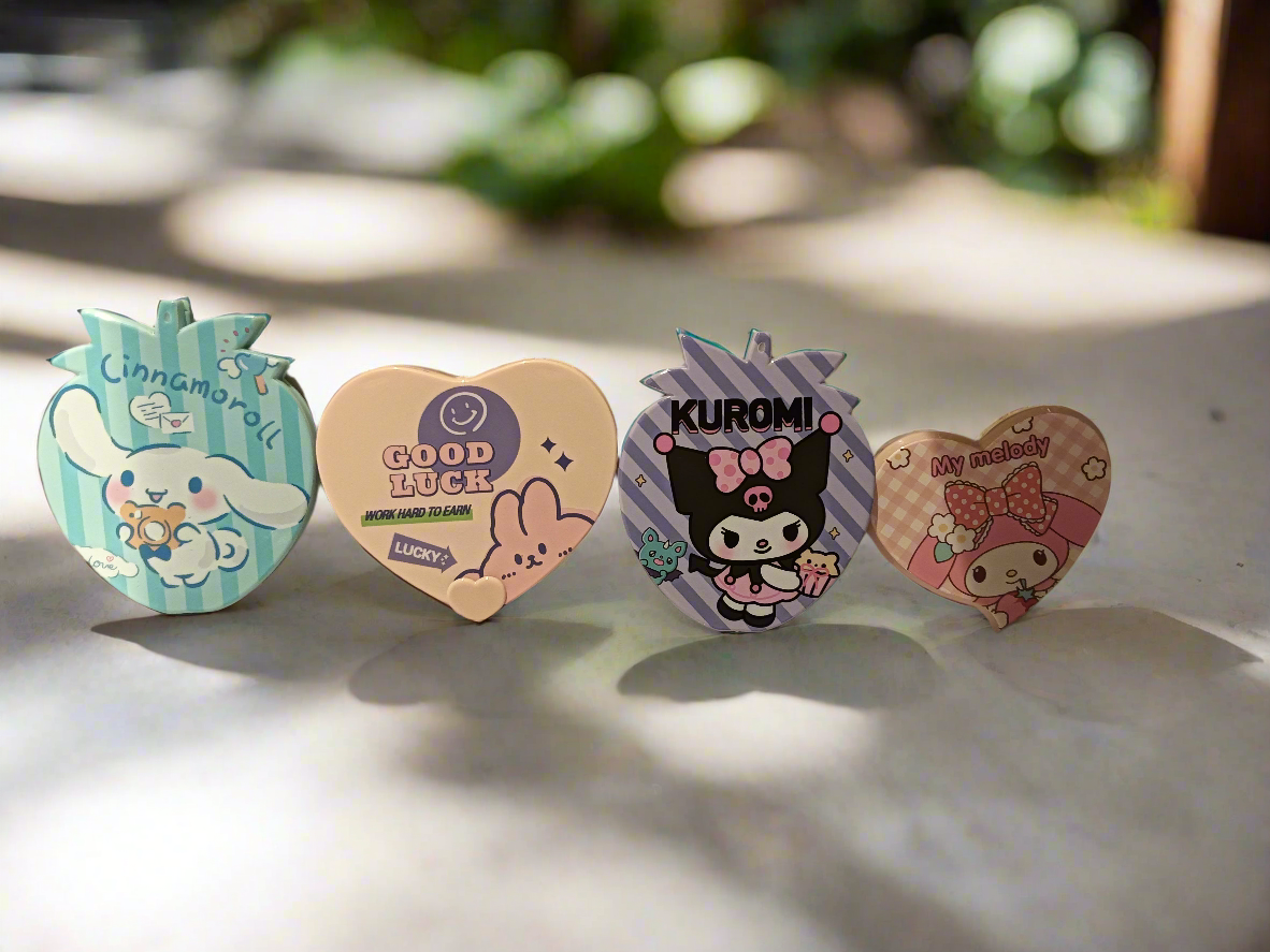 •  Folding Makeup Mirror Compact with Comb Pocket Biscuit Size Cute