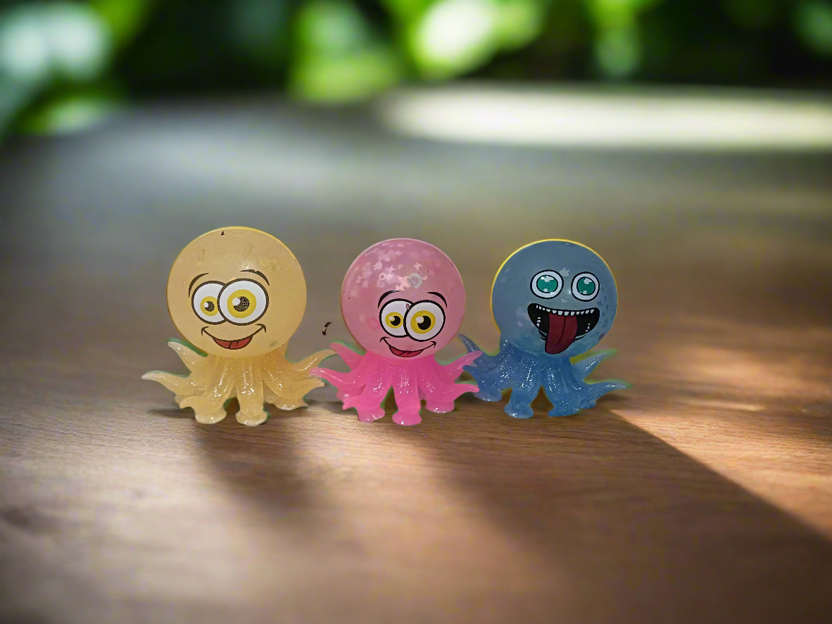 - SUCTION CUP OCTOPUS TOY: This octopus fidget toys stress balls comes in four vibrant colours: Yellow, Blue, Purple and Pink. The octopus tentacle suction cup feature is incorporated into the traditional stress ball squeeze and vent play to make this toy even more fun.