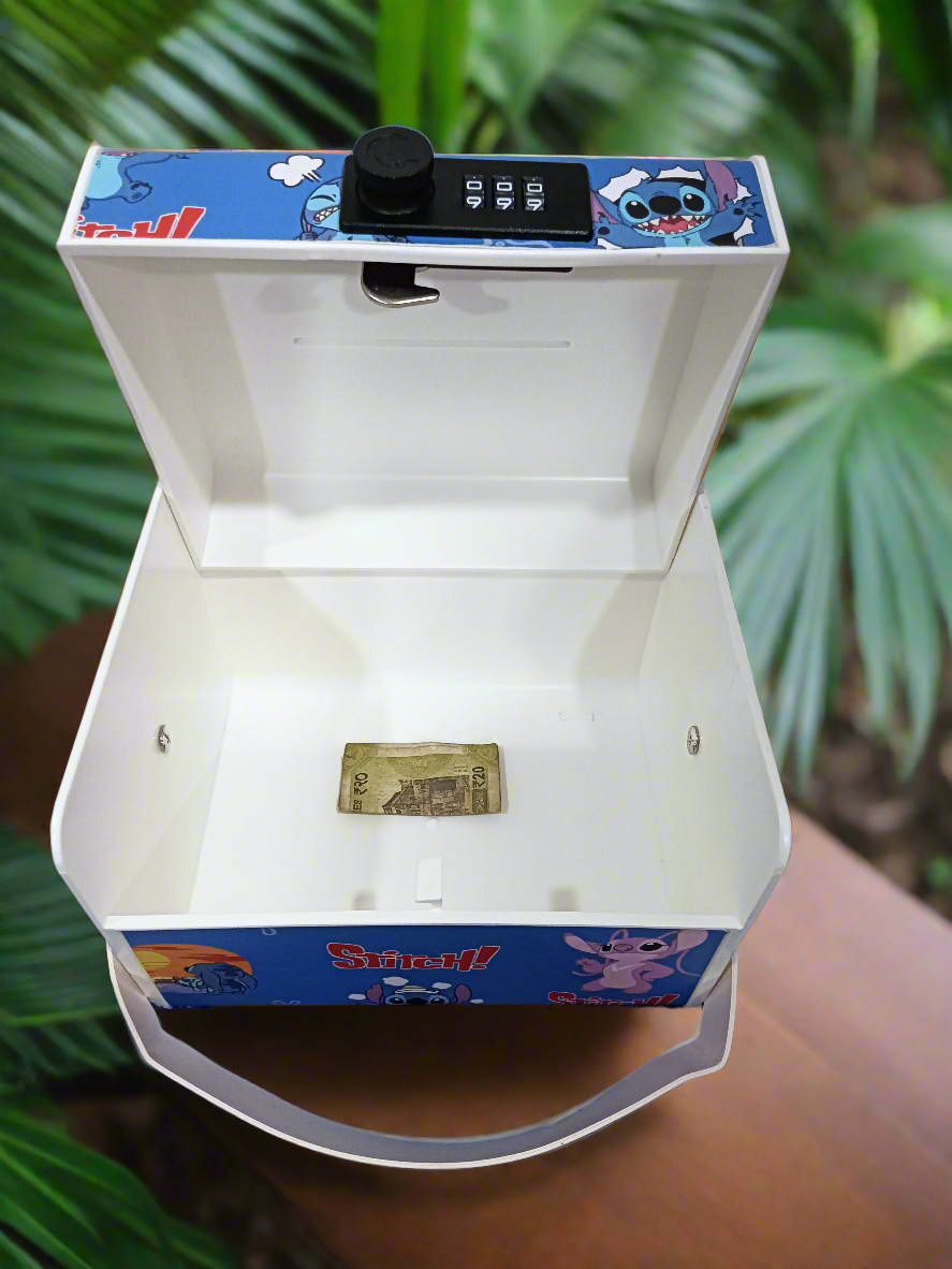 Password box money bank, designed for saving coins and banknotes with a secure combination lock feature.