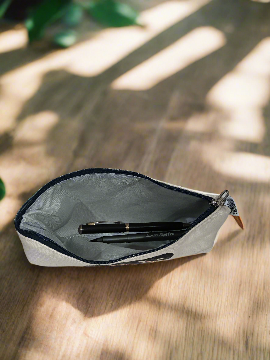 Often referred to as a cosmetic pouch or makeup bag, it can hold items like eyeliner, lipsticks, and eyeshadow.