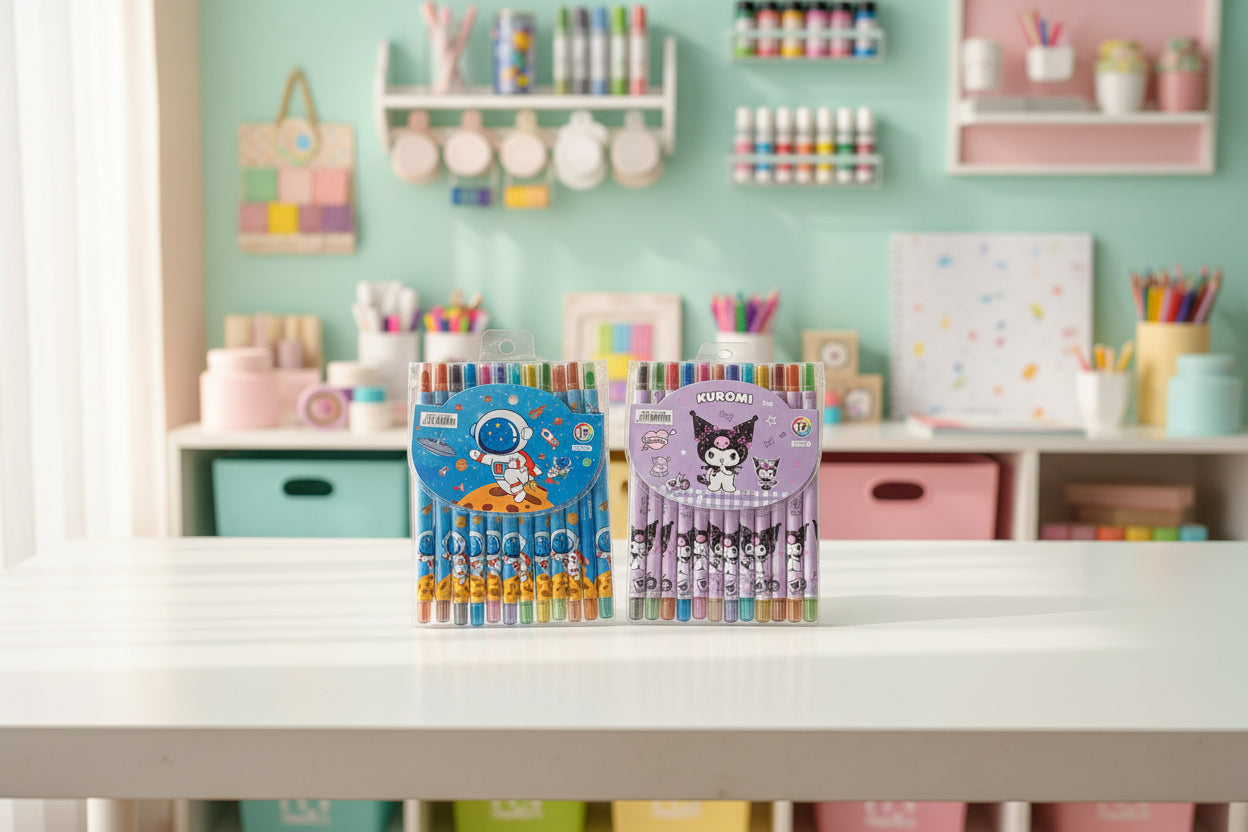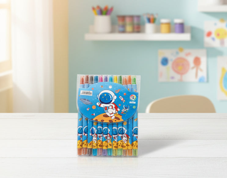 ⭐ Rolling crayon set with fun character-themed packaging