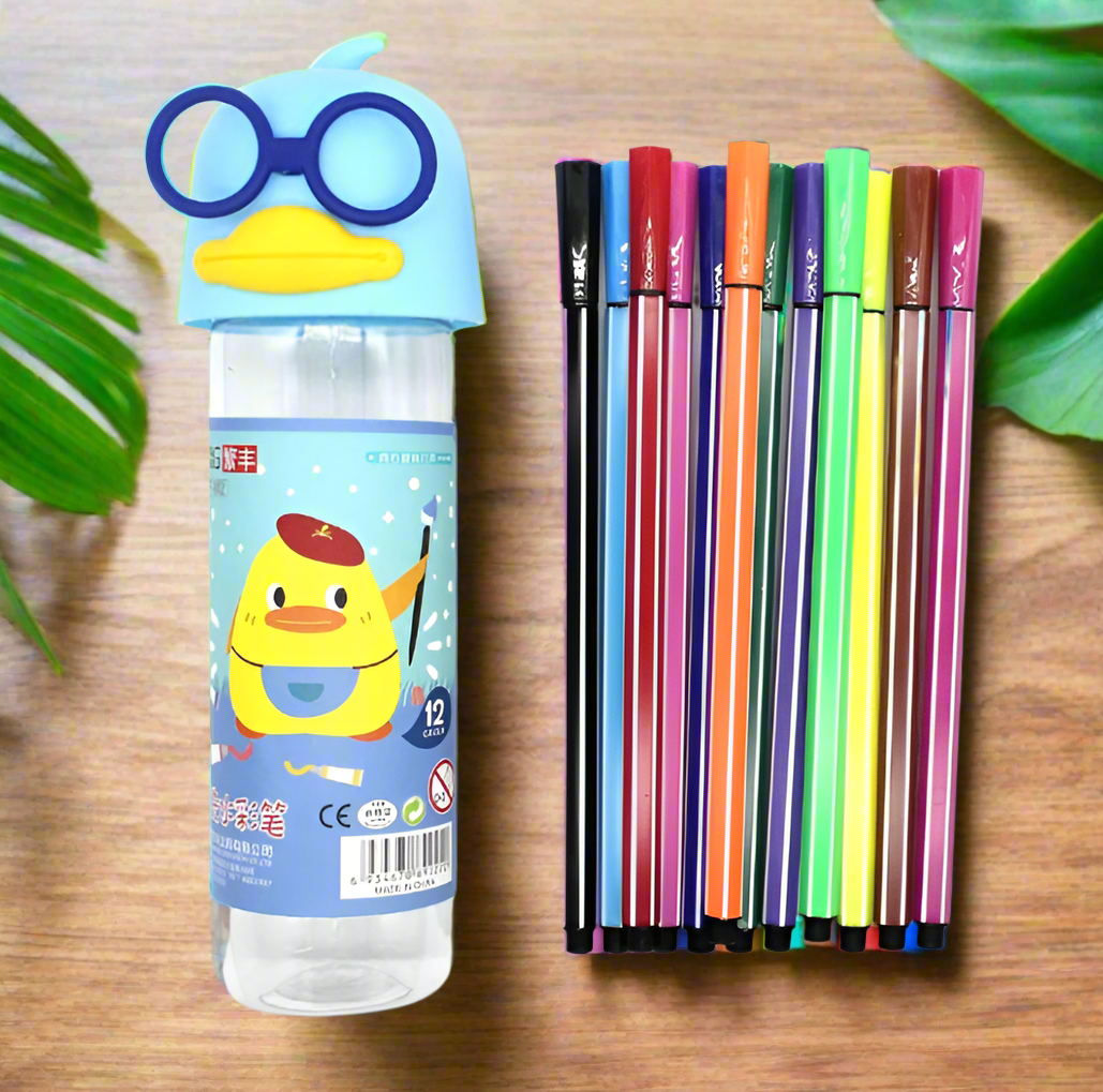 "Kawaii Duck Pens," which are sketch pens or coloring pens packaged in a cute duck-themed case with goggles.