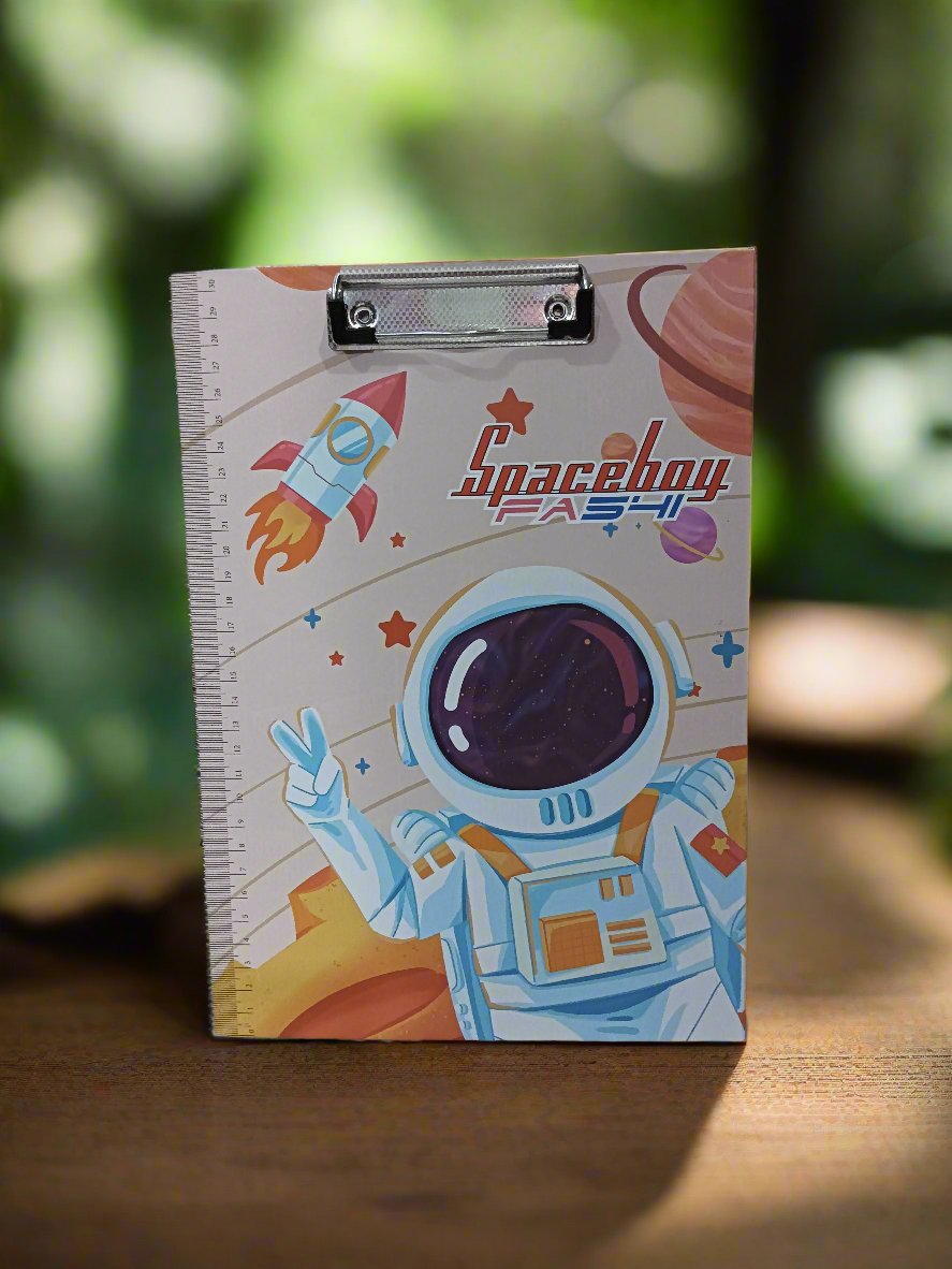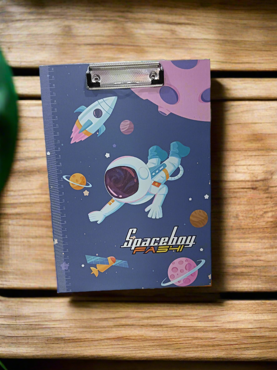 Space Theme Exam Board, also commonly known as a clipboard or exam pad, featuring a design centered around space exploration.