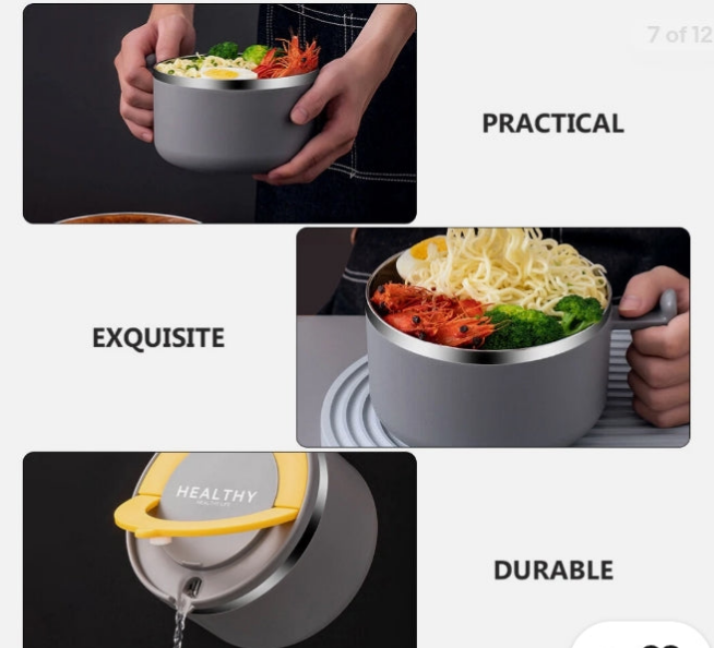 - It has a large capacity of 1000 ml, can hold two instant noodles at the same time, and is designed with ventilation and drainage holes that allow heat and water to drain anywhere.