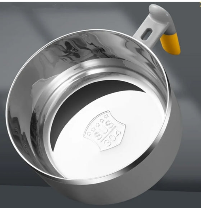- The instant pasta bowl is made of food grade 304 stainless steel and PP material, which is environmentally friendly, tasteless and does not rust. The handle is equipped with a jack that can be used to place spoons and forks and avoid direct contact with the desk. It is more hygienic.